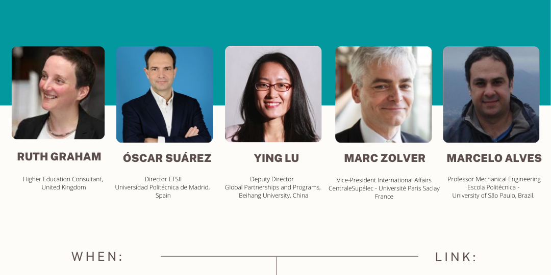 Our panel of experts from Europe (Óscar García from Universidad Politécnica de Madrid, Spain and Marc Zolver from CentraleSupélec, France), Asia (Ying Lu from Beihang University, China) and Latin America (Marcelo Alves Escola Politécnica, Universidade de São Paulo) shared their views on the current and future state of internationalization to initiate the discussion.