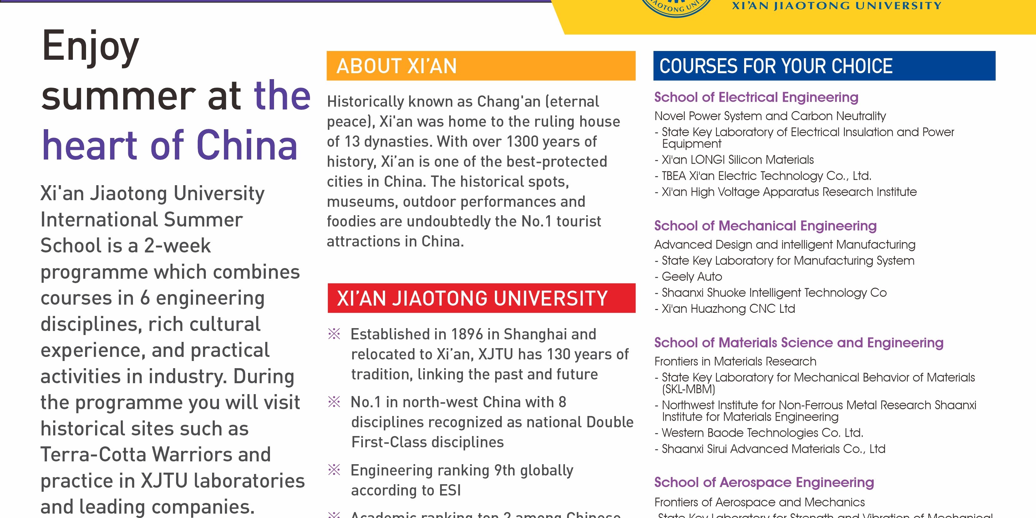 Join one of China’s most prestigious institutions, Xi’an Jiaotong University, for a two-week immersive summer program that blends cutting-edge academic exploration with rich cultural experiences.