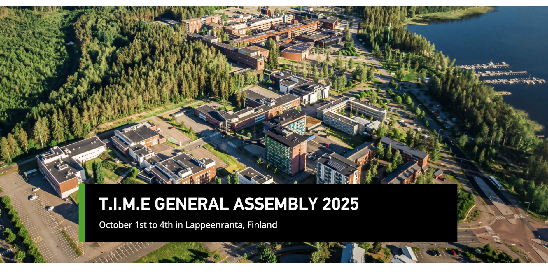 We are delighted to announce that the T.I.M.E. General Assembly 2025 will take place from October 1–4, 2025, hosted by LUT University in Lappeenranta, Finland. More details here.